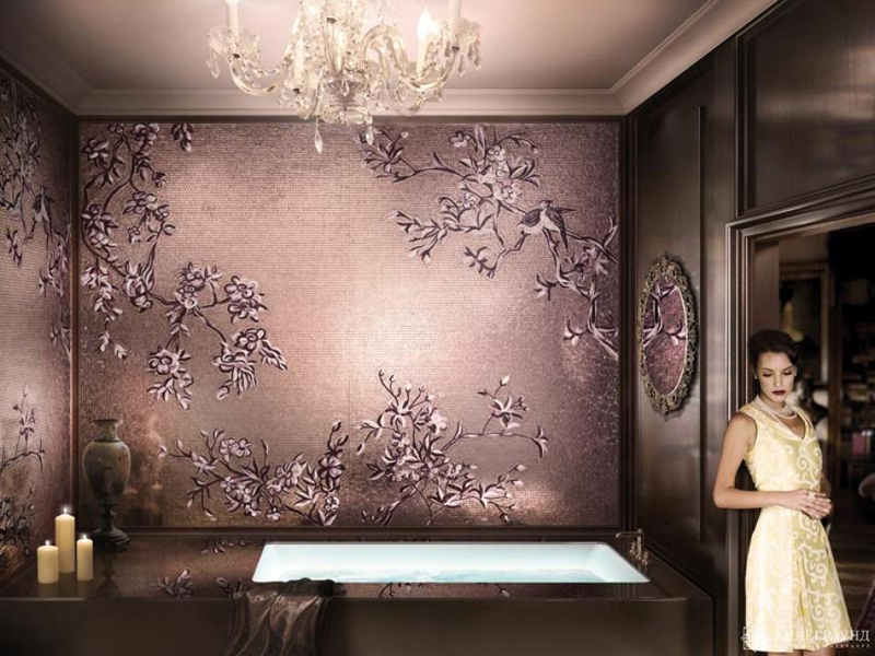 Конечно же, мозаика по цене значительно отличается от других покрытий для пола и стен, например, таких как кафельная плитка. Стоимость мозаики гораздо выше, но благодаря ей можно создавать различные узоры и даже картины. Отделка мозаикой органично вписывается как в современный, так и античный интерьер помещения.
