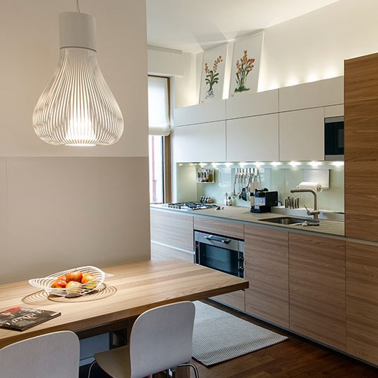Фабрика Flos была основана в 1962 г. в местечке Мерано, в Италии. В целях развития новых современных технологий освещения основатели фабрики Flos пригласили в компанию братьев Кастиглионе и Тобиа Скарпа. Одним из первых материалов, с которым начали экспериментировать эти трое всемирно известных дизайнера, стал кокон - очень гибкий материал, производимый в США. Материал применяемый в cветильниках, снискавшие мировое признание, как Once, Taraxacum и Zeppelin. В 1988 г. компания начала сотрудничество с легендарным Филиппом Старком. Именно этот человек создал для Flos такие серии светильников как KTribe и Archimoon, Guns, Ara, а так же популярный подвесной светильник Skygarden.
